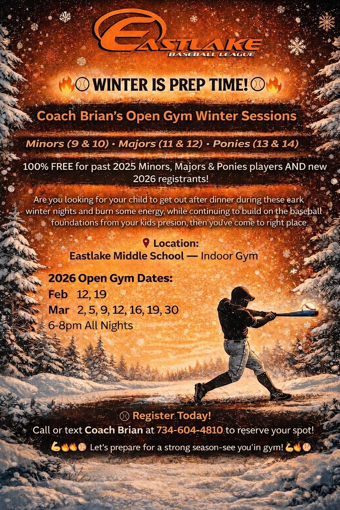Cold nights don’t mean baseball stops. Coach Brian’s Open Gym Winter Sessions are the perfect way for players to stay active, burn energy, and keep sharpening their skills all winter long ⚾️💪